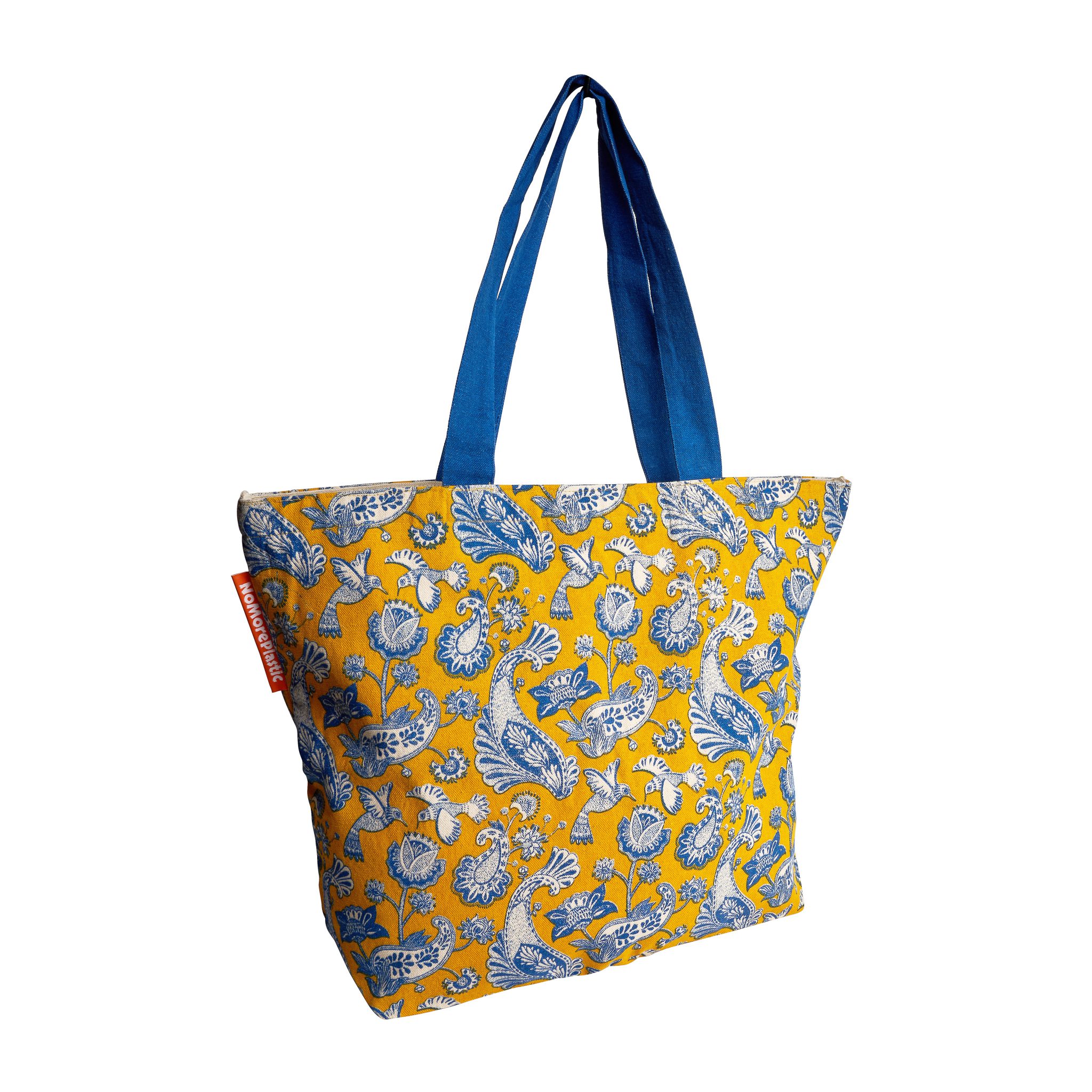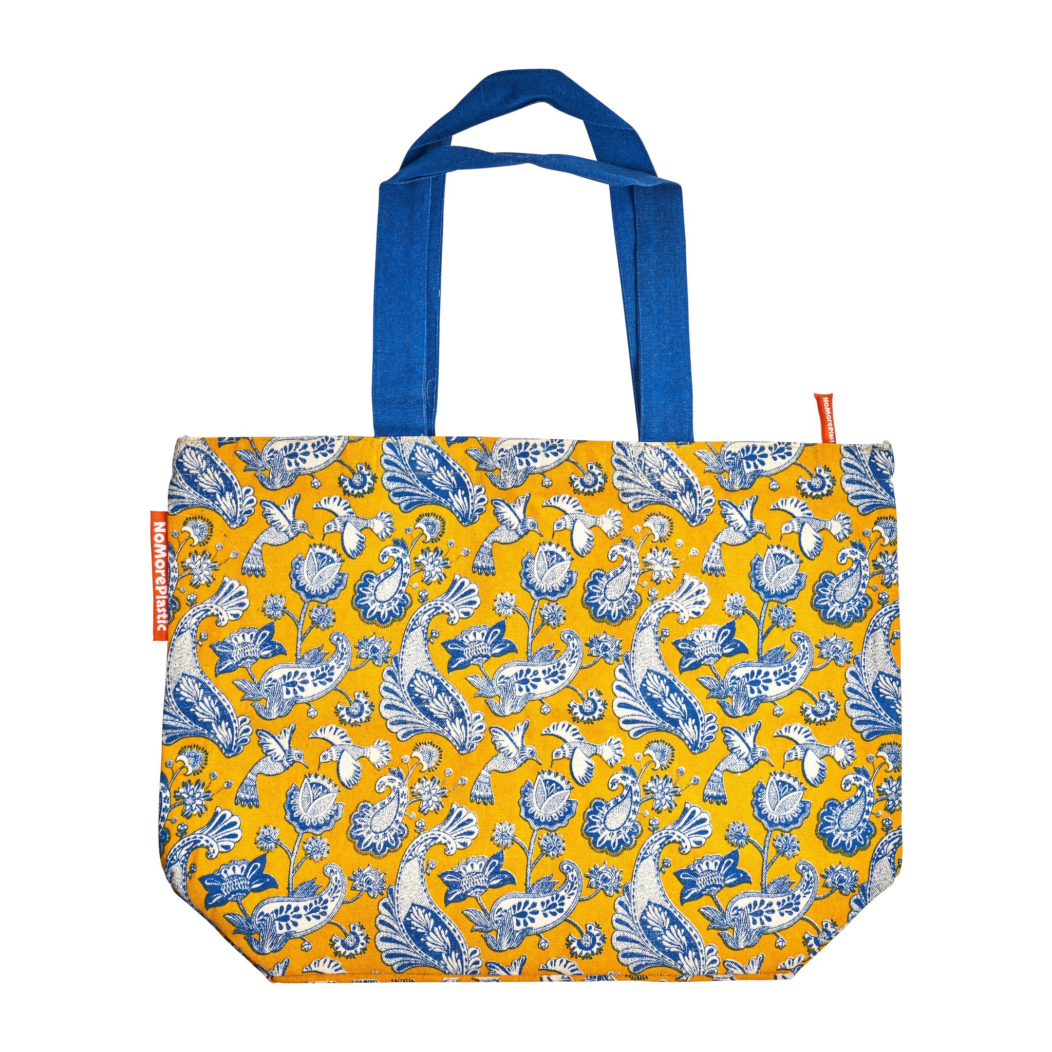 De tas heeft aan de buitenkant de mooie paisley print in helder geel en blauw, dus lekker kleurrijk. De binnenkant van de shopper is gevoerd met ecru katoen en heeft afsluitbaar binnenvak (met rits). Zo kun jij je sleutels, portemonnee en telefoon veilig opbergen. Ook het hoofdvak sluit met een rits. De hengsels zijn perfect van lengte, zodat je de tas zowel aan de hand als over je schouder kunt dragen. Je kunt de shopper ook uitstekend gebruiken als strandtas of tas voor een weekendje weg. De sleutelring aan de binnenkant, die kun je gebruiken voor bijvoorbeeld jouw sleutels of winkelwagenmuntje. Met deze hippe shoppers heb jij geen plastic tasjes meer nodig! Bekijk de foto's voor de mooie details.