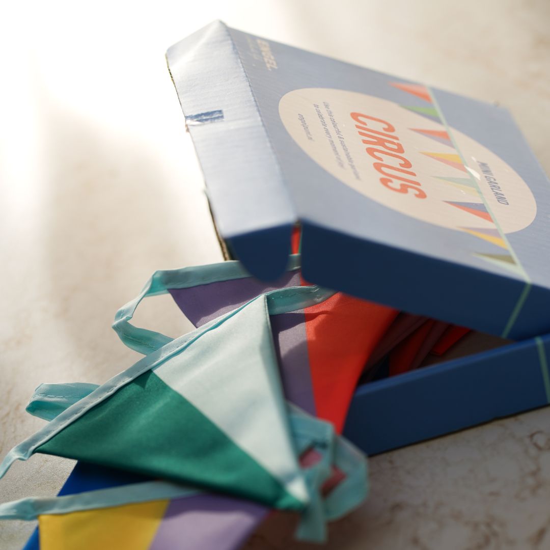 Circus mini: 16 bont gekleurde vlaggetjes aan een groen lint van 3.65 meter. Cool staat voor swingend, stevig, robuust en avontuurlijk. Precies de uitstraling die ENGEL. aan deze stoffen slinger wilde meegeven en waar wij heel blij van worden.
