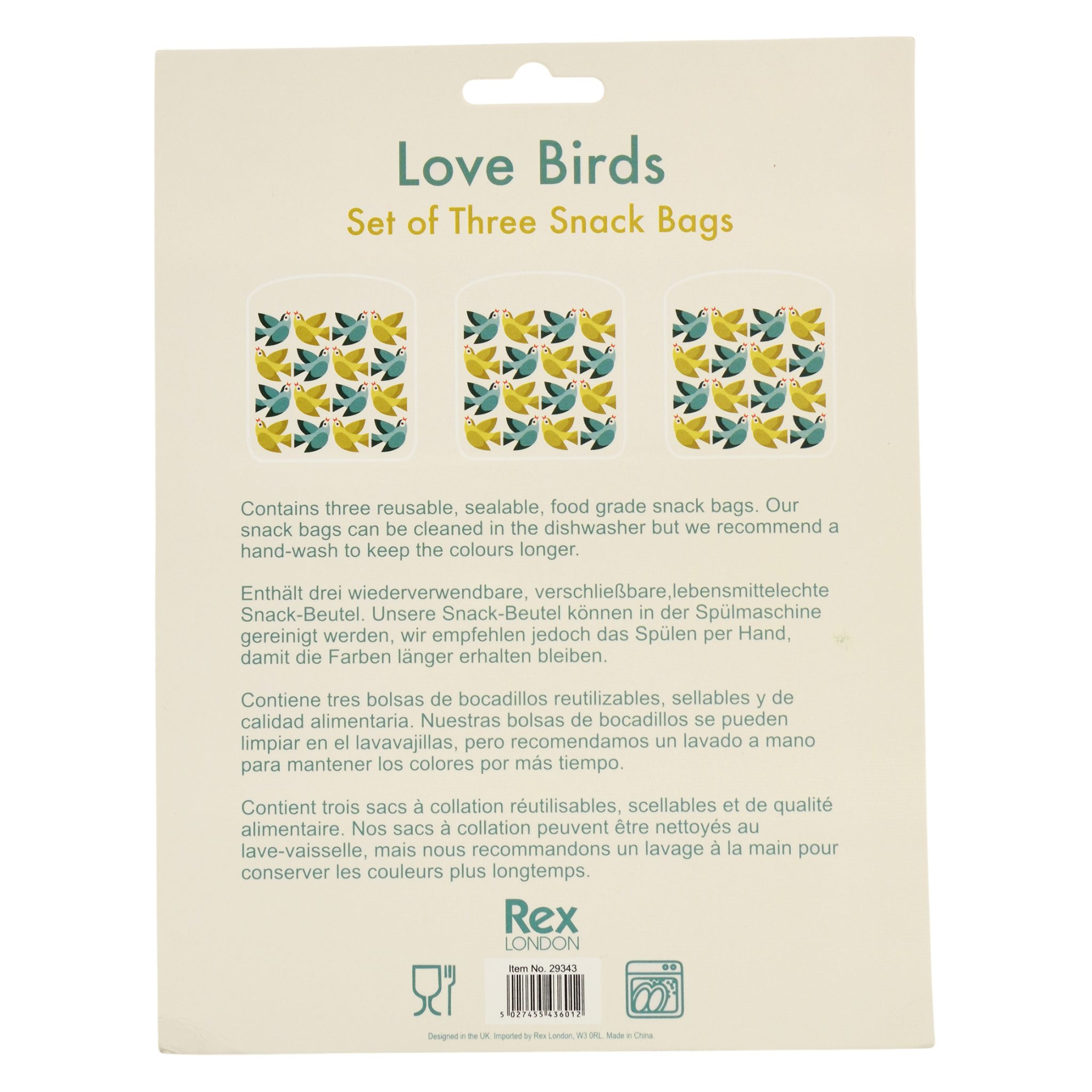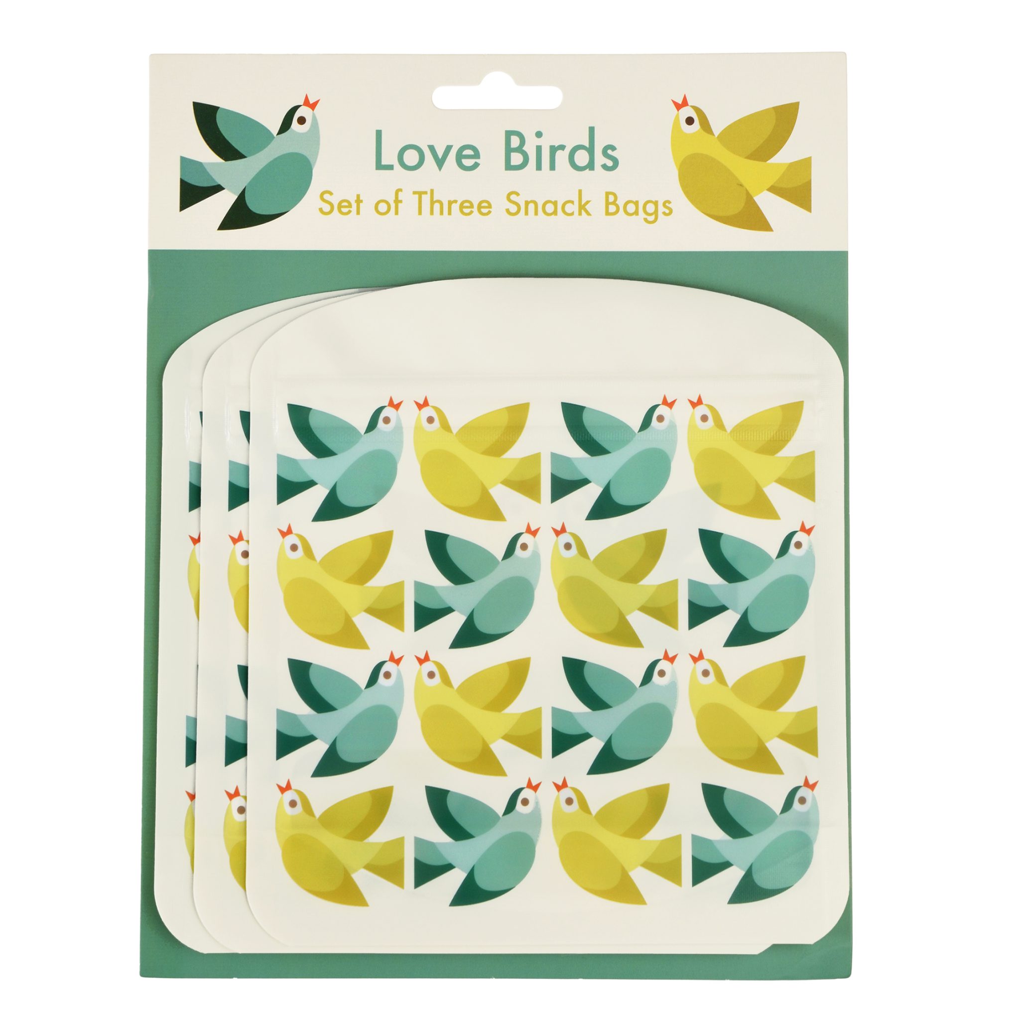 Snack Bags – Love Birds – set van 3 – herbruikbare lunchzakjes – Rex London
