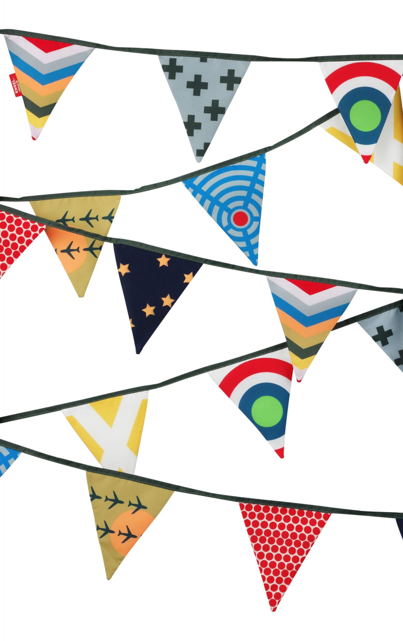 De vlaggenlijn van ENGEL. is gemaakt van gerecyclede plastic flessen en geschikt voor binnen én buiten. De slinger is lekker licht, zacht, glanzend en wasbaar op 40 °C. De slinger is verpakt in een mooi doosje zodat je deze altijd weer netjes kunt opbergen. Met de vliegtuigen en radar een leuke slinger voor de jongens kamer.