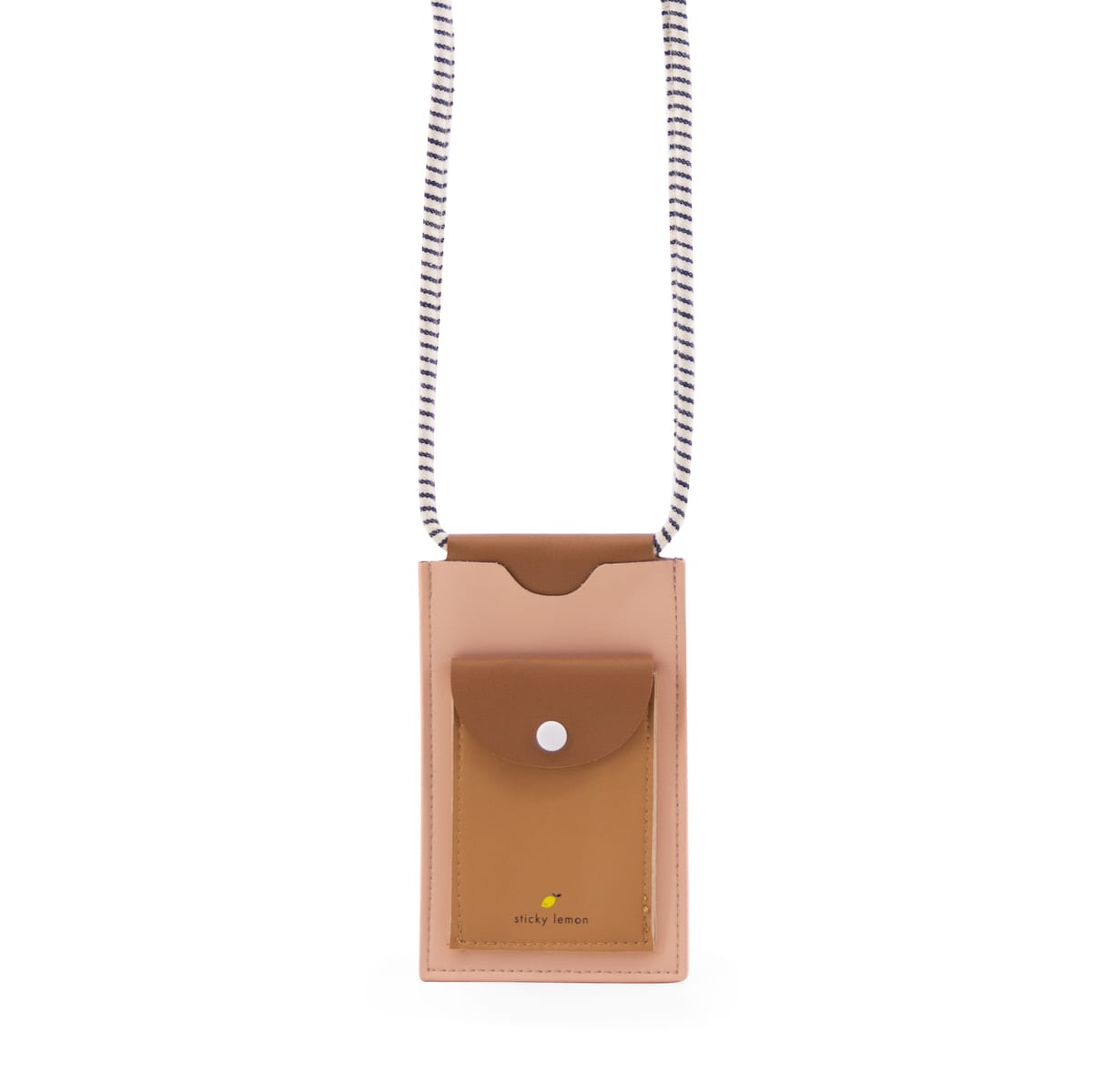Telefoontasje oftewel Phone Pouch van Sticky Lemon in de heerlijke retro kleuren Lemonade Pink & Cinnamon Brown. Door deze combinatie van nude kleuren en gestreepte schouderband past dit favoriete tasje bij elke outfit.Ā Ideaal om je telefoon mee te nemen als je geen zakken in je kleding hebt. Of je wilt geen grote tas meenemen. Dit telefoonhoesje is een hippe eye-catcher en geschikt voor de grotere iPhone en andere grotere telefoons. Bijvoorbeeld de iPhone 15 past er perfect in (zonder extra beschermhoesje).
