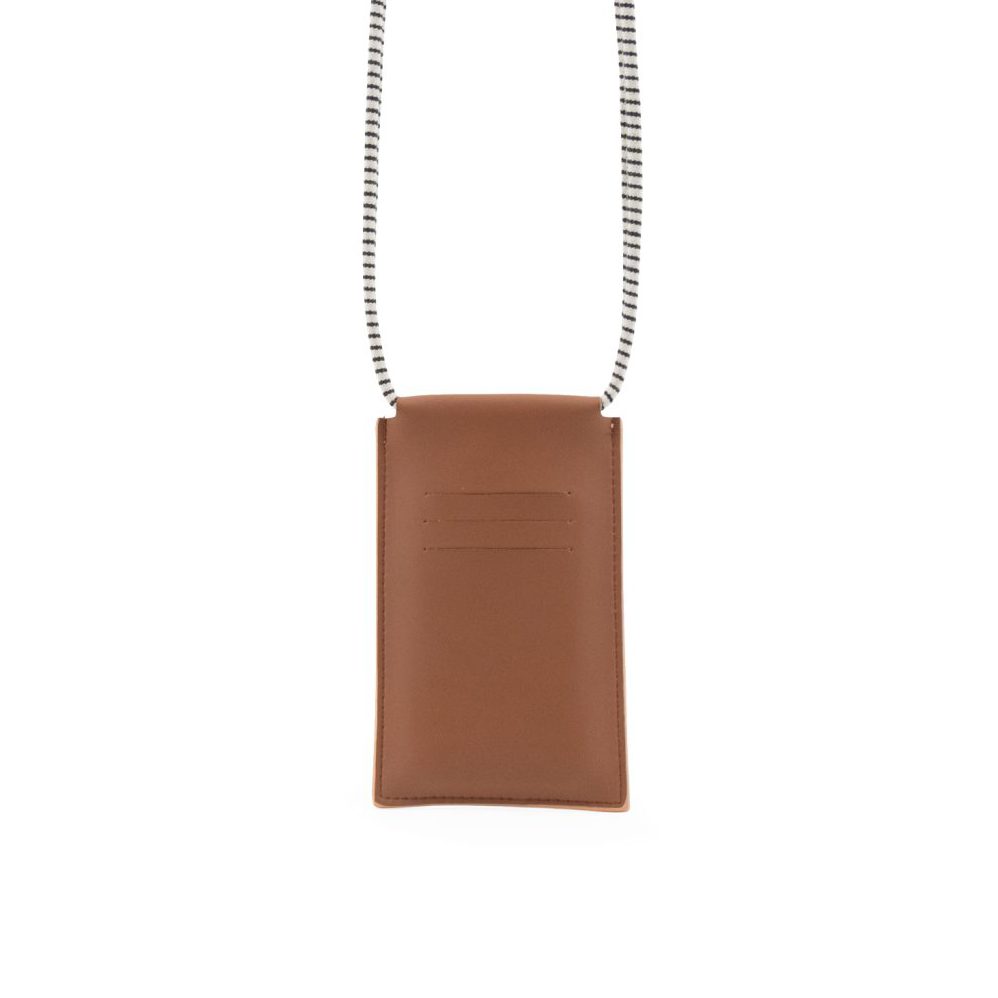 Hip en handig telefoontasje met extra ruimte voor pasjes en wat geld. In mooie “nude” kleuren met gestreeptje schouderband. Ideaal als je geen zakken in je kleding hebt en het staat nog leuk ook!