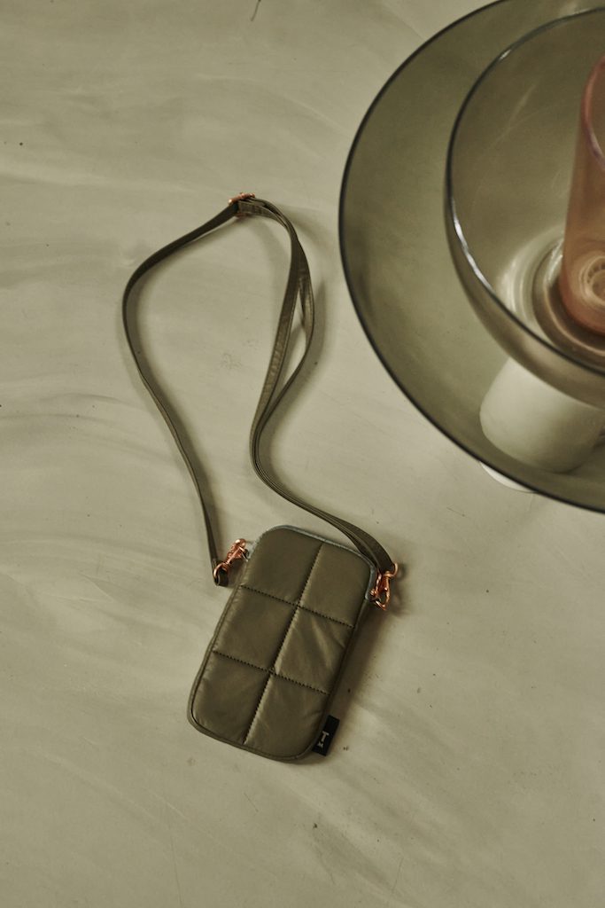 Het is geen verrassing dat het puffy telefoontasje in stijlvol groen dit jaar de modetrend beheerst! Dit trendy Luce telefoontasje, ook wel bekend als Phone pouch van Tinne + Mia, is verkrijgbaar in prachtige retrokleuren. Dit specifieke model is gewatteerd en straalt in tijdloos olijfgroen. Met een handige rits in rosé goud kun je moeiteloos je telefoon tevoorschijn halen. Er is zelfs een klein binnenvakje om je pasje veilig te bewaren. Dit telefoonhoesje is een must-have voor situaties waarin je geen zakken in je kleding hebt of gewoon geen zin hebt om een grote tas mee te nemen. Het biedt ruimte aan grotere telefoons, zoals de iPhone 13 Plus (meestal zonder extra beschermhoes).