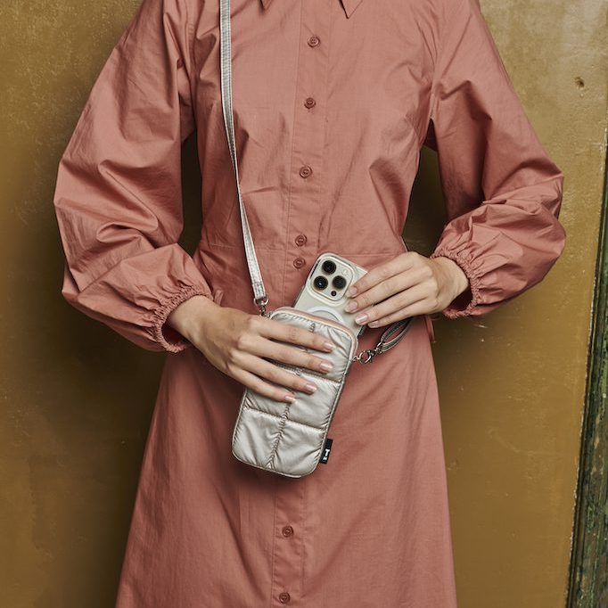 Het is geen verrassing dat het puffy telefoontasje in lichte goudglans dit jaar de modetrend beheerst! Dit trendy Luce telefoontasje, ook wel bekend als Phone pouch van Tinne + Mia, is verkrijgbaar in prachtige retro kleuren. Dit specifieke model is gewatteerd en door de handige rits in mat zilver kun je eenvoudig je telefoon tevoorschijn halen. Er is zelfs een klein binnenvakje om je pasje veilig te bewaren. Dit telefoonhoesje is een must-have voor situaties waarin je geen zakken in je kleding hebt of gewoon geen zin hebt om een grote tas mee te nemen. Het biedt ruimte aan grotere telefoons, zoals de iPhone 13 Plus (meestal zonder extra beschermhoes).