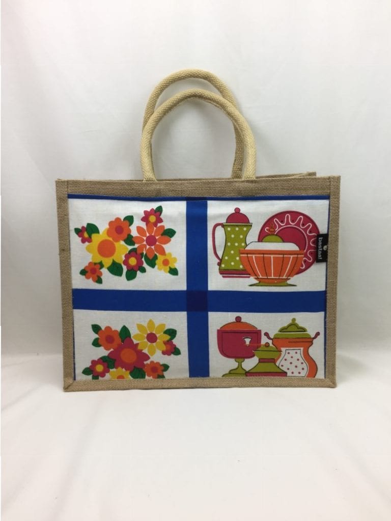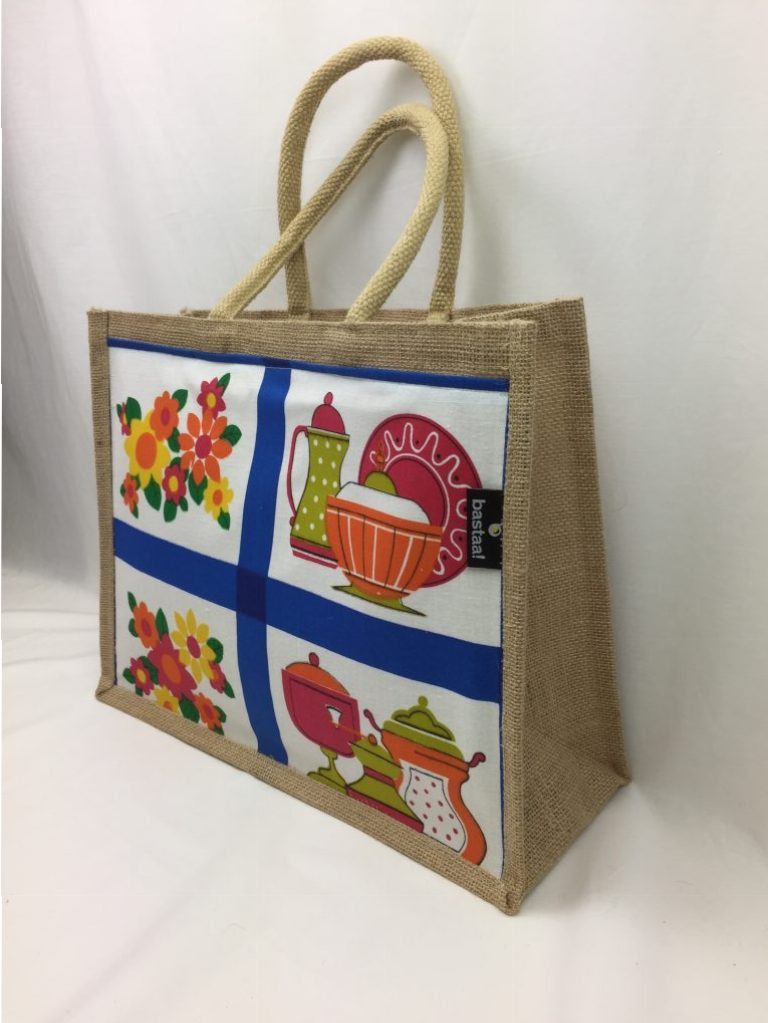 Mooie jute tas met voorzijde voorzien van originele retro stof uit de jaren '70. Handig formaat boodschappentas met geplastificeerde binnenkant en handig binnenvakje van vilt voor bijvoorbeeld sleutels, pen etc.Ā U heeft hiermee een unieke tas, leuk om kado te geven of gewoon voor uzelf!