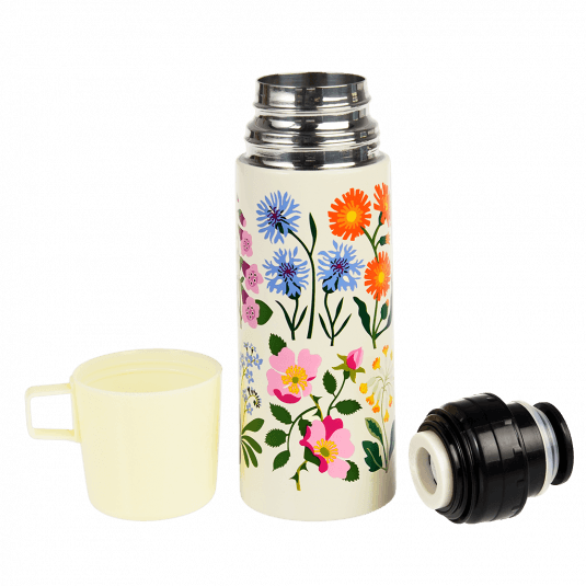 Deze vrolijke thermosfles Wild Flowers (met beker) is ideaal om je kopje koffie of thee mee te nemen. Jouw eigen koffie to-go op weg naar je werk, een dagje weg of gewoon thuis. Deze thermosfles heeft een handige drinkbeker, ruime vulopening en lekt niet. Met de handige drukknop in de dop kun je eenvoudig je beker koffie inschenken.