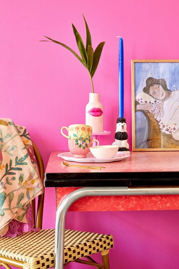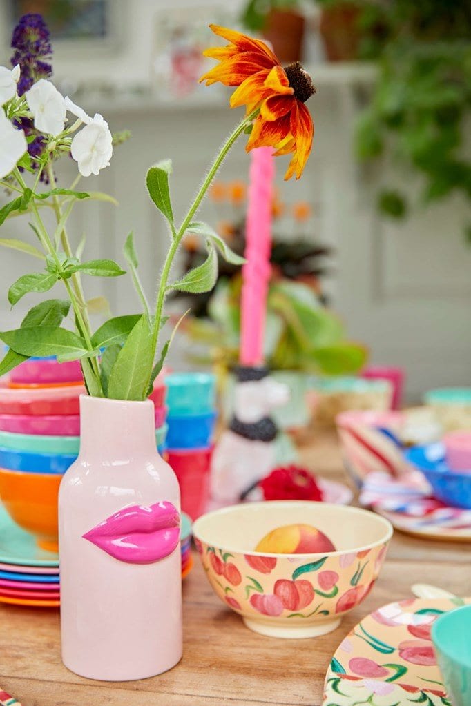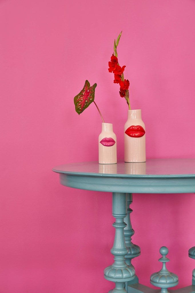 Hippe vaas met fuchsia lips. Deze vrolijke vaas is echte eyecatcher. Mooi om met óf zonder bloemen neer te zetten. Vier de liefde!