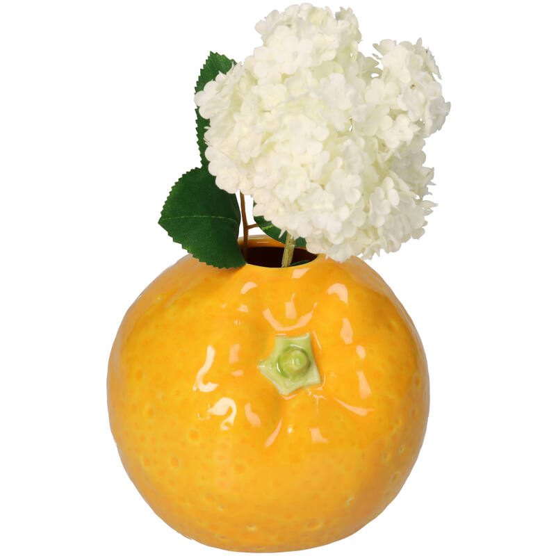 Trendy vaas oranje sinaasappel van keramiek. Deze kleurrijke fruit vaas is met óf zonder bloemen een echte blikvanger en passend in elk interieur. Hoogte 10 cm.