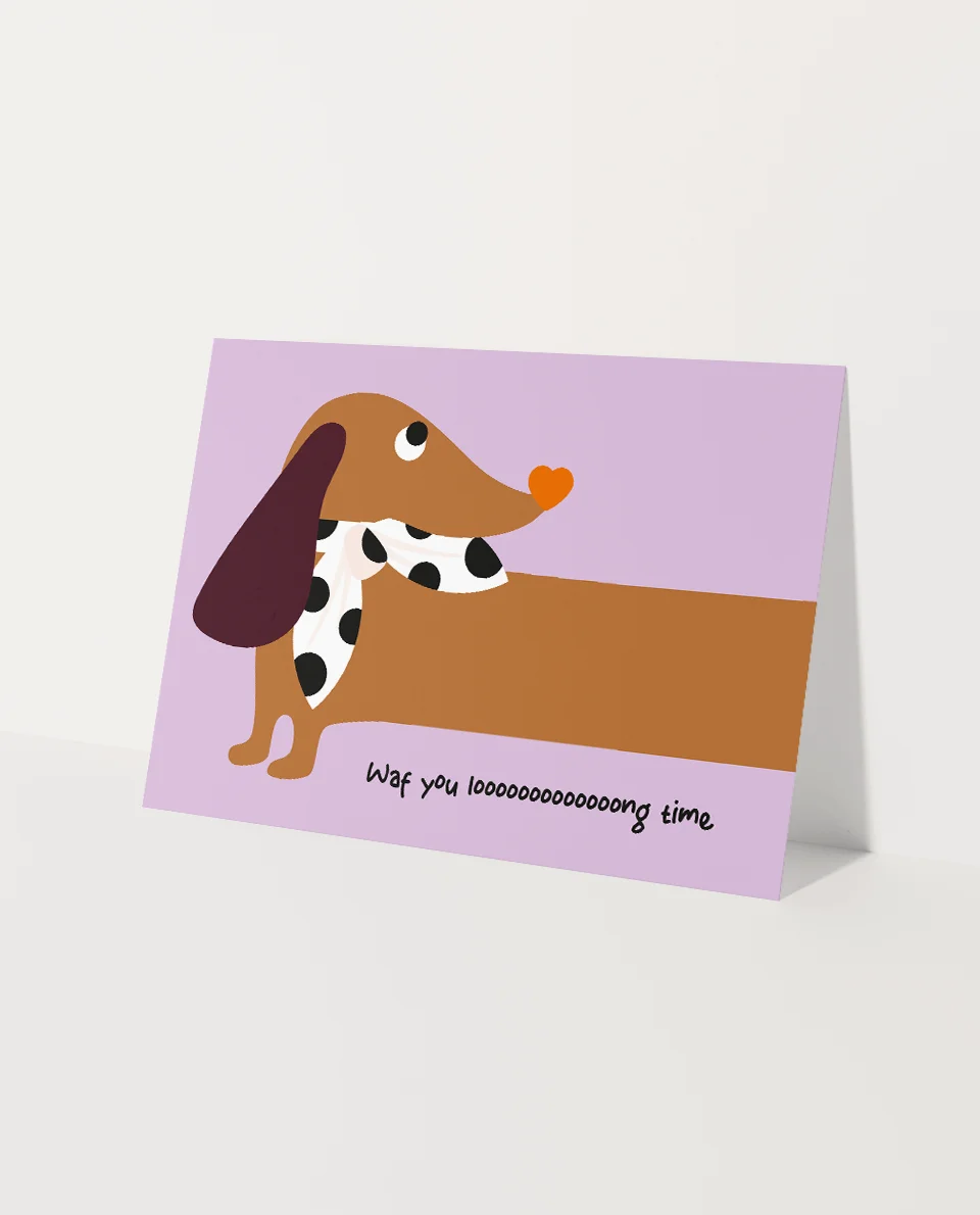 De teckel: klein van stuk, maar een grote persoonlijkheid. Met hun lange rug, korte pootjes en eigenwijze blik weten ze overal de show te stelen. Ooit gefokt als jachthond, nu vooral dé hartendief in huis. Deze Heyday hondenkaart is een luchtige liefdesverklaring, koppig en charmant tegelijk. Net zoals een teckel zelf. Perfect om een teckel fan recht in het hart te raken.,