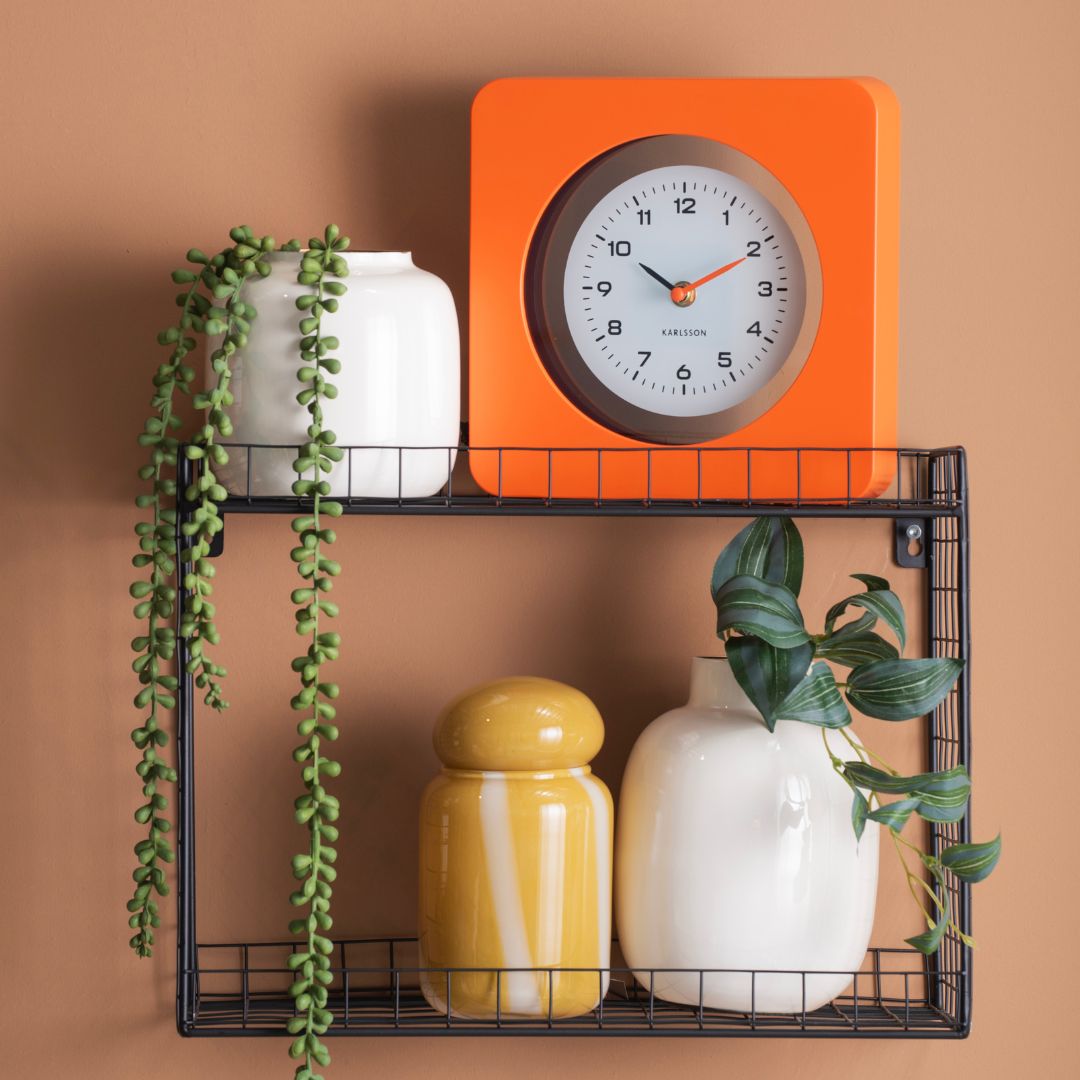 Vrolijk je muur op met de Karlsson wandklok New Vintage! Retro looks, stil uurwerk en kleurrijk. Zet ām neer of hang ām op, 22 x 22 cm. Werkt op 1 AA-batterij.