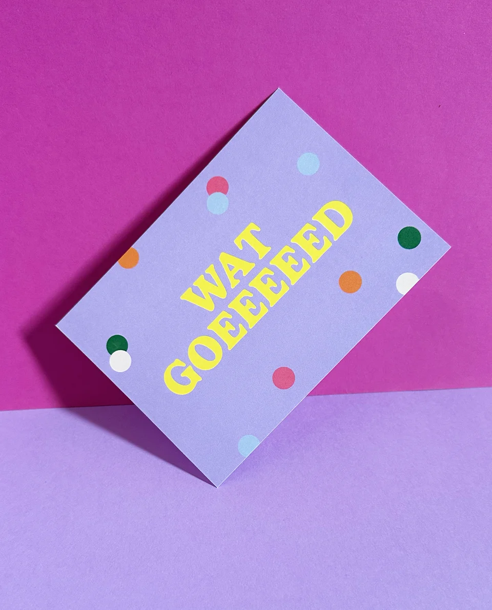 Iemand feliciteren met verjaardag, diploma of andere feestelijkheden? Laat het weten met deze leuke wenskaart. Deze kaarten van Hey Day zijn zo leuk om te versturen én om te ontvangen. Zet ze met de handige kaartpin op je tafel, bureau of plank. Of hang ze in een lijstje aan de muur. Maak elk moment bijzonder en verras je vrienden, familie, buren, geliefde of die ene geweldige collega met een originele wenskaart.